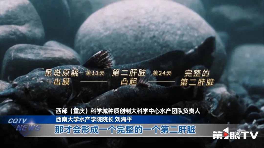 西部(重庆)科学城种质创制大科学中心水产团队负责人、西南大学水产学院院长刘海平:“黑斑原鮡,它有两个肝脏。腹腔里面有一个肝脏,在它的表皮下层也有肝脏。那这两个肝脏,中间有一个连接带所连接,这两个肝脏就是为了适应高海拔极端环境,所衍生出来的特殊器官。没有吃的时候,它就可以消耗第二肝脏的一些能量,让它存活下来。鮡科鱼类出膜以后,它是没有第二肝脏的。那到第24天的时候,那才会形成一个完整的一个第二肝脏。我们也希望找到这个主效基因,为人类的肝脏再生这样一个重大级的世界级难题,起到一个理论和技术上面的一个参考。”