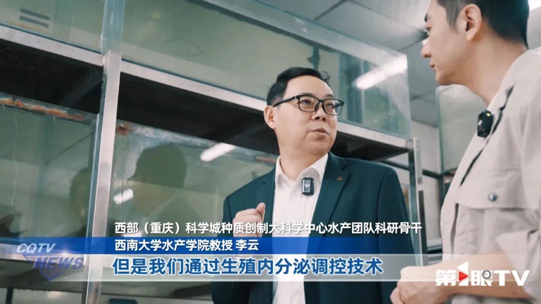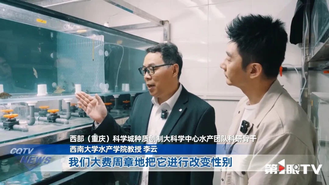 西部(重庆)科学城种质创制大科学中心水产团队科研骨干、西南大学水产学院教授李云:“对,这个很有意思,它们原本是雌鱼,但是我们通过生殖内分泌调控技术,给它进行了性别控制,让它性成熟的时候,能够排精,这样的话它们的后代,100%全部是雌鱼。