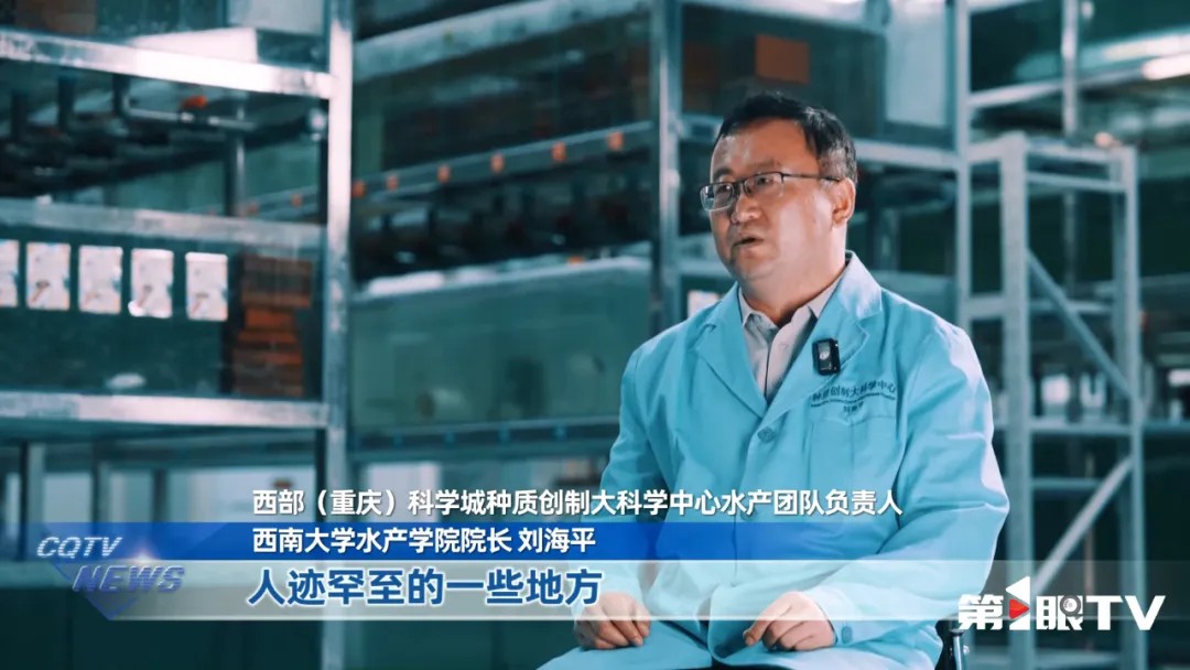 西部(重庆)科学城种质创制大科学中心水产团队负责人、西南大学水产学院院长刘海平:“我们会在长江上游,人迹罕至的一些地方,去收集生长力快的、抗病力强的品种。我看到黑斑原鮡第一眼,我觉得这个鱼胖嘟嘟的,很可爱,它就是跟其他鱼长得不一样,具备跳跃属性。”