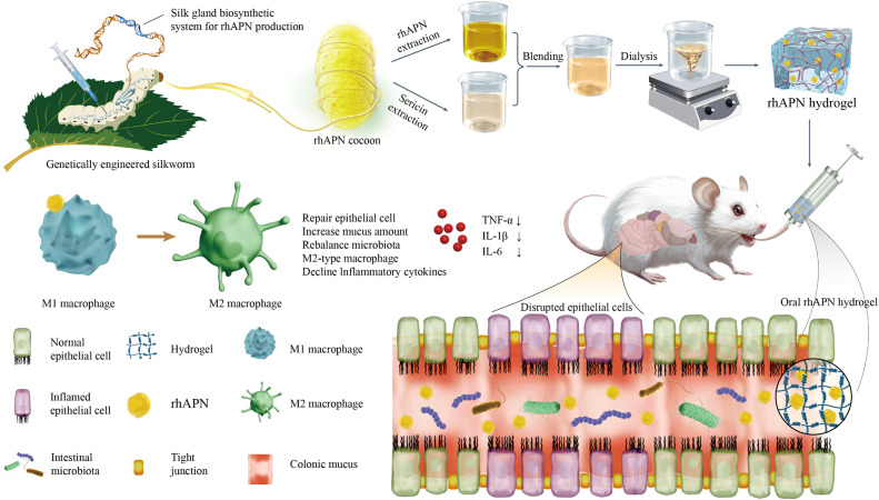 近日,西部(重庆)科学城种质创制大科学中心家蚕团队在医学生物领域国际知名期刊《生物材料学报》(Acta Biomaterialia)(中科院医学1区Top,IF2024=9.6)上正式发表了题为《生物合成人脂联素丝胶水凝胶治疗小鼠溃疡性结肠炎》(Genetically engineered sericin hydrogels for the delivery of human adiponectin in treating ulcerative colitis in mice)的研究论文,系统报道了利用家蚕丝腺生物合成技术,在蚕丝中高效合成具有活性的脂联素(APN),并开发递送与缓释APN的丝胶水凝胶系统,用于治疗小鼠溃疡性结肠炎的研究进展。
