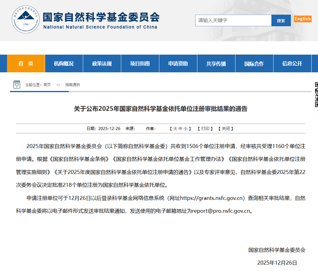 据悉,国家自然科学基金委员会2025年共收到1506个单位注册申请,最终218个单位获批,通过率14.48%。