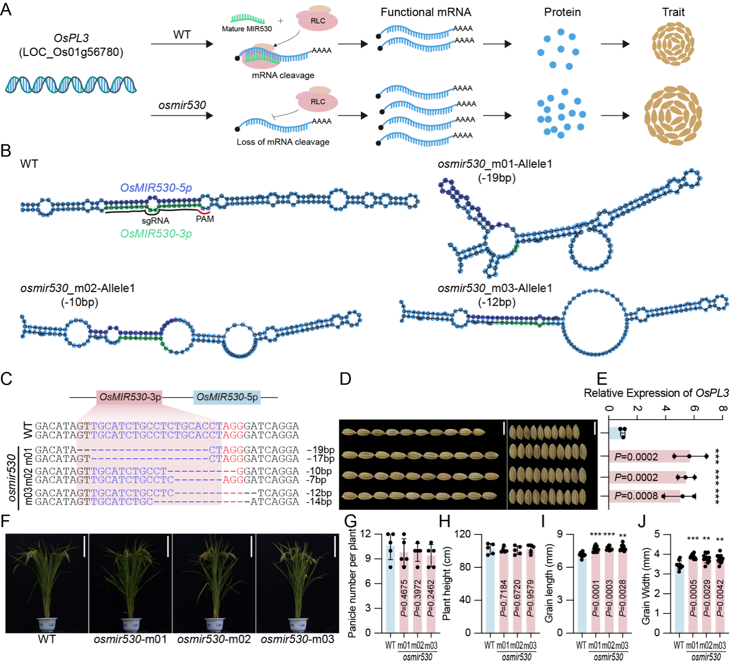 4、精准编辑miRNA前体结构,实现水稻粒型性状定向改良